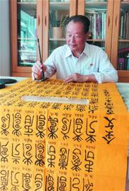 谈到这幅“气派”百寿图的创作初衷,杨乃琛告诉记者,1986年,也就是35年前,他在青岛市博物馆担任副馆长,那一年父母双亲65岁,父亲的生日是农历九月初九重阳节,杨乃琛决定给老人写幅百寿图。 “没想到,这事并非那么容易,从决定开始创作百寿图,到搜罗全国各地青铜器上的‘寿’字,再统一进行加工书写,编著出处,完全成品耗时了整整半年时间。 ”杨乃琛说。 “当我在父亲重阳节生日那天,把百寿图带回家送给父母时,别说母亲是一脸喜悦,连一向深沉的父亲嘴角都是掩藏不住的开心。 ”杨乃琛说。