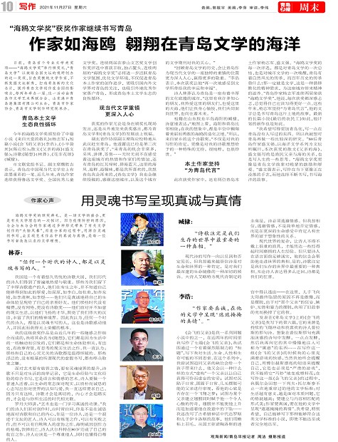 作家如海鸥 翱翔在青岛文学的海洋用灵魂书写呈现真诚与真情
