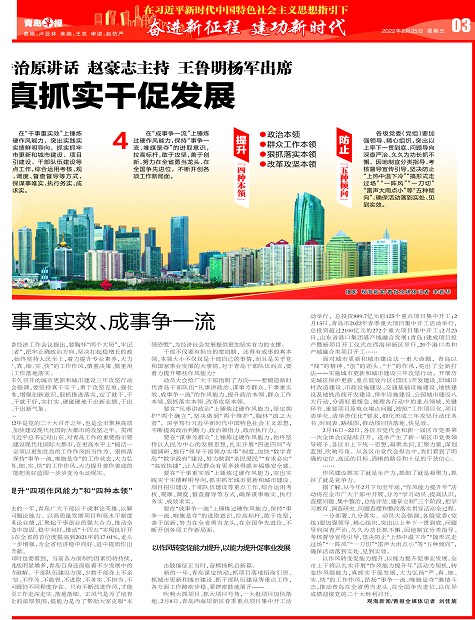 吹响大抓项目、抓大项目号角,一大批项目加快落地。2月8日,青岛西海岸新区春季重点项目集中开工活动举行,总投资889.7亿元的125个重点项目集中开工;2月15日,青岛市2022年春季重大项目集中开工活动举行,总投资超过2100亿元的272个重大项目集中开工;2月23日,山东省港口集团港产城融合发展(青岛)建成项目投产暨新项目开工仪式在西海岸新区举行,20个港口类和产城融合类项目开工……