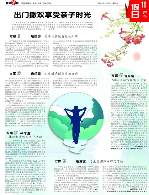 春色满园关不住,一袭芳菲撒人间。好天气遇上五天小长假,朋友圈里从几天前就开始热烈讨论“要带孩子去哪玩呢? ”在周边游成为主流的趋势下,市内及周边的景区景点都有不少亲子游的好去处。假期里各大景区景点也筹备了一系列寓教于游、多元跨界的活动,既能让孩子开阔眼界,又能增进家庭成员间的情感,还能解锁新技能,一举多得。