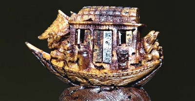 一枚硬币大小的桃核,经过打坯、布局、雕刻、抛光等一系列工艺,神还原明代《核舟记》中描绘的“核舟”:镂空船舱,8扇门窗可自由开合;船头45环锚链,环环相扣,转动自如;船上的小书童正趴桌上酣睡,小和尚正仰头打呵欠……这是国家级非物质文化遗产代表性传承人王绪德的得意之作。