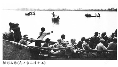 走进位于南京的渡江战役胜利纪念馆,参观者都会看到展墙上的一幅《我送亲人过大江》的照片(如图)。照片中那个奋力摇橹行船、送解放军过长江的背影,体现出来的力量仿佛能穿越时空,直抵人心。这张照片是怎么拍摄下来的呢?