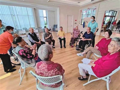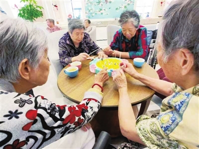 一进入青岛城润家老年公寓的大门,首先映入眼帘的就是许多老人围着大堂门厅在进行趣味游戏——套圈夺宝,每人每次发五个圈圈,以矿泉水瓶为目标,套中目标矿泉水瓶即可。今年84岁的孙桂芬手拿着圈圈正准备进行套圈比赛,经过一番努力,最终她套中了三个矿泉水瓶,顺利得到了一枚印章。“老年公寓经常搞这些趣味活动,老年人都很喜欢,三枚印章可以换抽纸或者口罩一包,四枚印章可以换透明皂1块,我还得继续努力参加其他游戏。”家住市南区的孙桂芬有三个子女,她入住青岛城润家老年公寓已经一年有余,她告诉记者,这里的服务人员特别勤快,有事一按铃马上就到房间里来,而且一到休息日孩子们都会过来看她,让她觉得在这里住得很舒心。