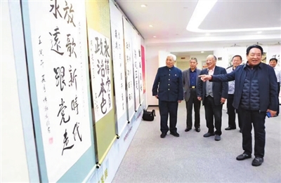 原海军北海舰队司令员马辛春中将,为本次书画展题词“继往开来”。本次书画艺术展展出的100余幅书画作品,表达了永远跟党走、艺术为人民的坚定决心和信心。