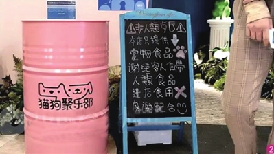 门口的提示板上写着“谢绝客人自带人类食品进店食用”字样。