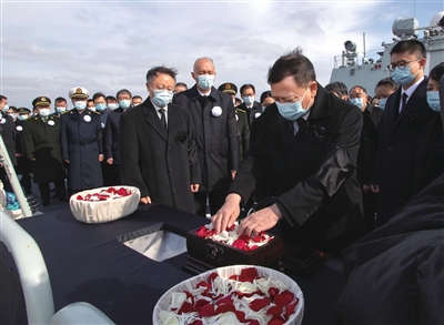 12月11日,遵照江泽民同志及其亲属的意愿,敬爱的江泽民同志的骨灰在长江入海口撒入大海。受党中央委托,中共中央政治局常委、中央书记处书记蔡奇等领导同志和江泽民同志的夫人王冶坪等亲属护送骨灰撒放。 新华社发