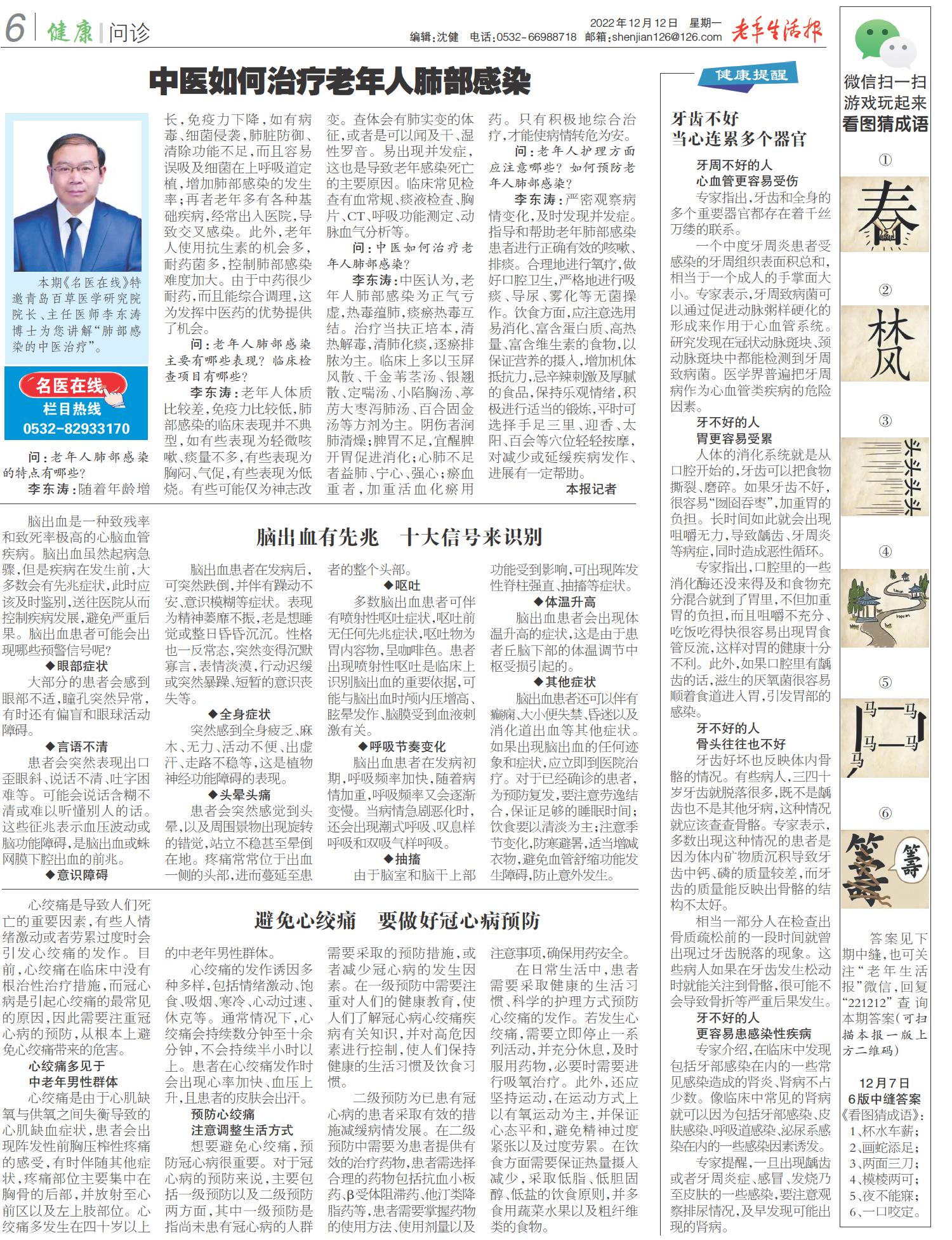 A01 头版 A02 乐龄快报 A03 健康周刊 A04 健康周刊 A06 健康问诊 A07 文史 A08 博览