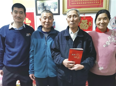 许连生一家三口给父亲许京先(右二)送去回忆录。