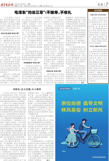 “不以规矩,不成方圆。”在毛泽东曲折传奇、波澜壮阔的人生道路上,常常用“约法三章”来进行规范和约束,其操行守则,充分彰显了中国共产党人的党性本色和高风亮节。