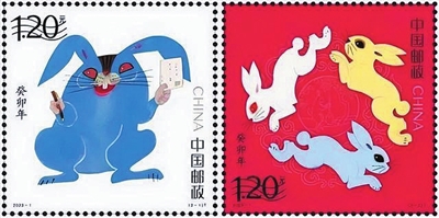 近日,由著名艺术家黄永玉设计创作、定于2023年1月5日发行的《癸卯年》特种邮票被吐槽,该邮票一套两枚,其中一枚上的兔子长得蓝皮红眼被网友称为有“妖气”。