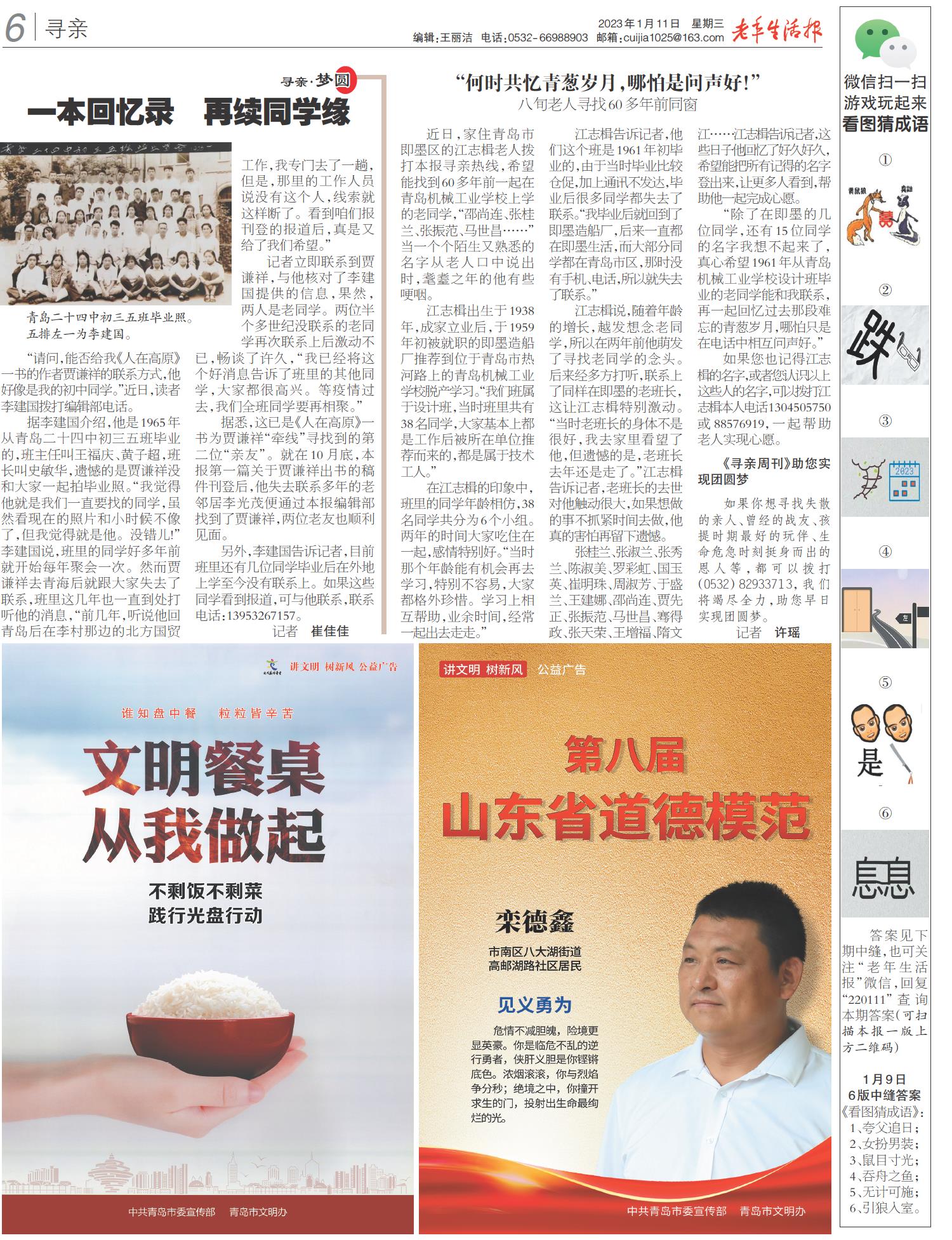 A01 头版 A02 特别报道 A03 延年益寿 A04 养老周刊 A05 美食 A06 寻亲 A07 文史 A08 说法