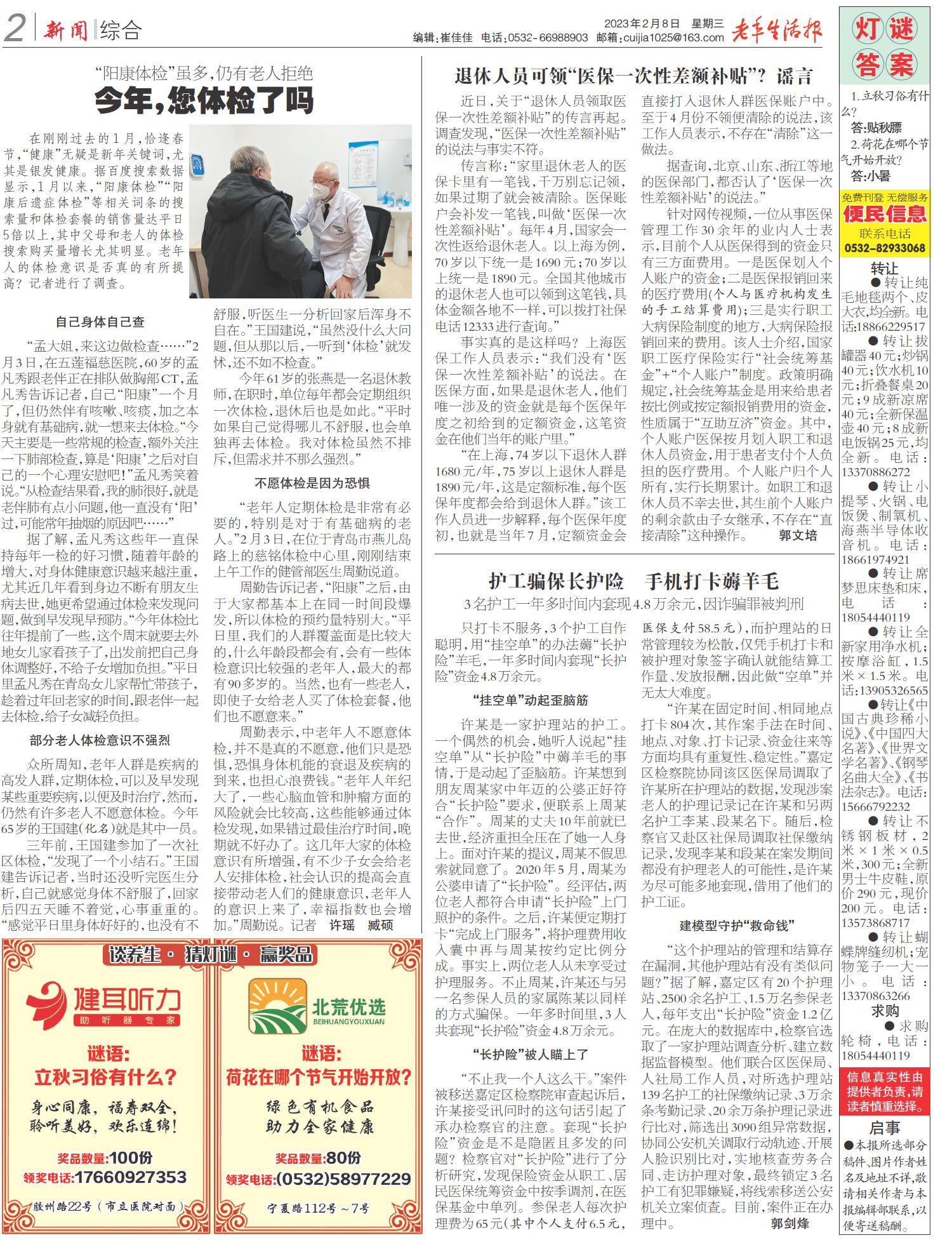 A01 头版 A02 综合 A03 延年益寿 A04 养老周刊 A06 齐鲁春秋 A08 说法
