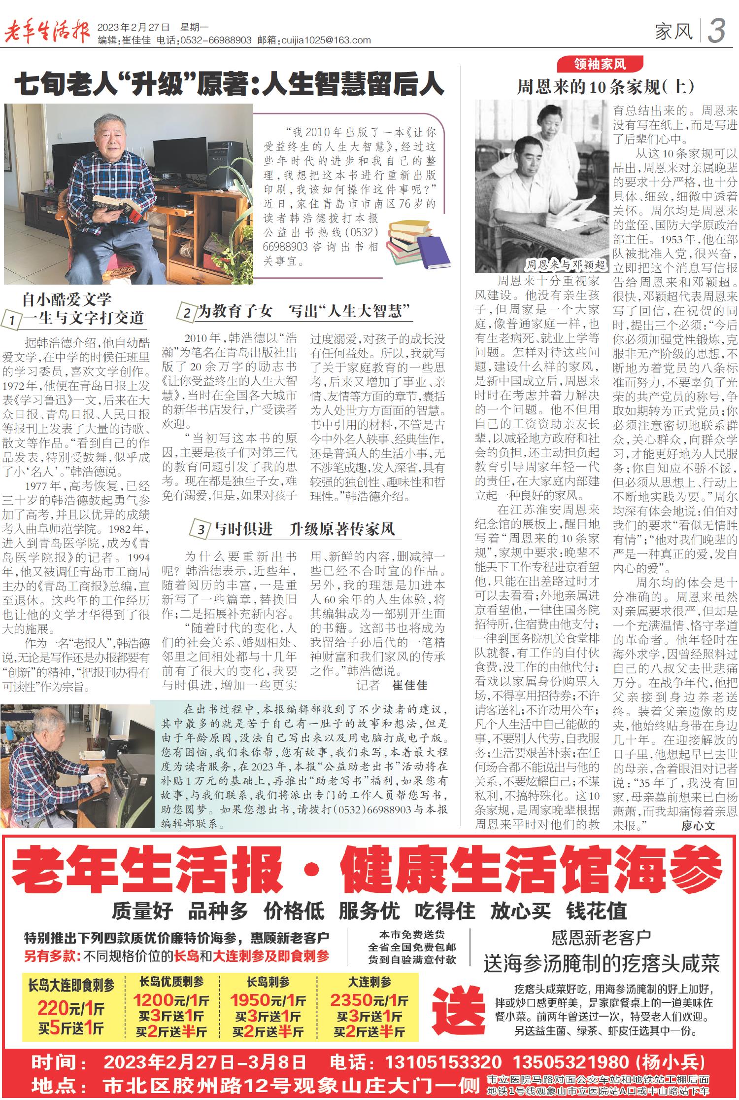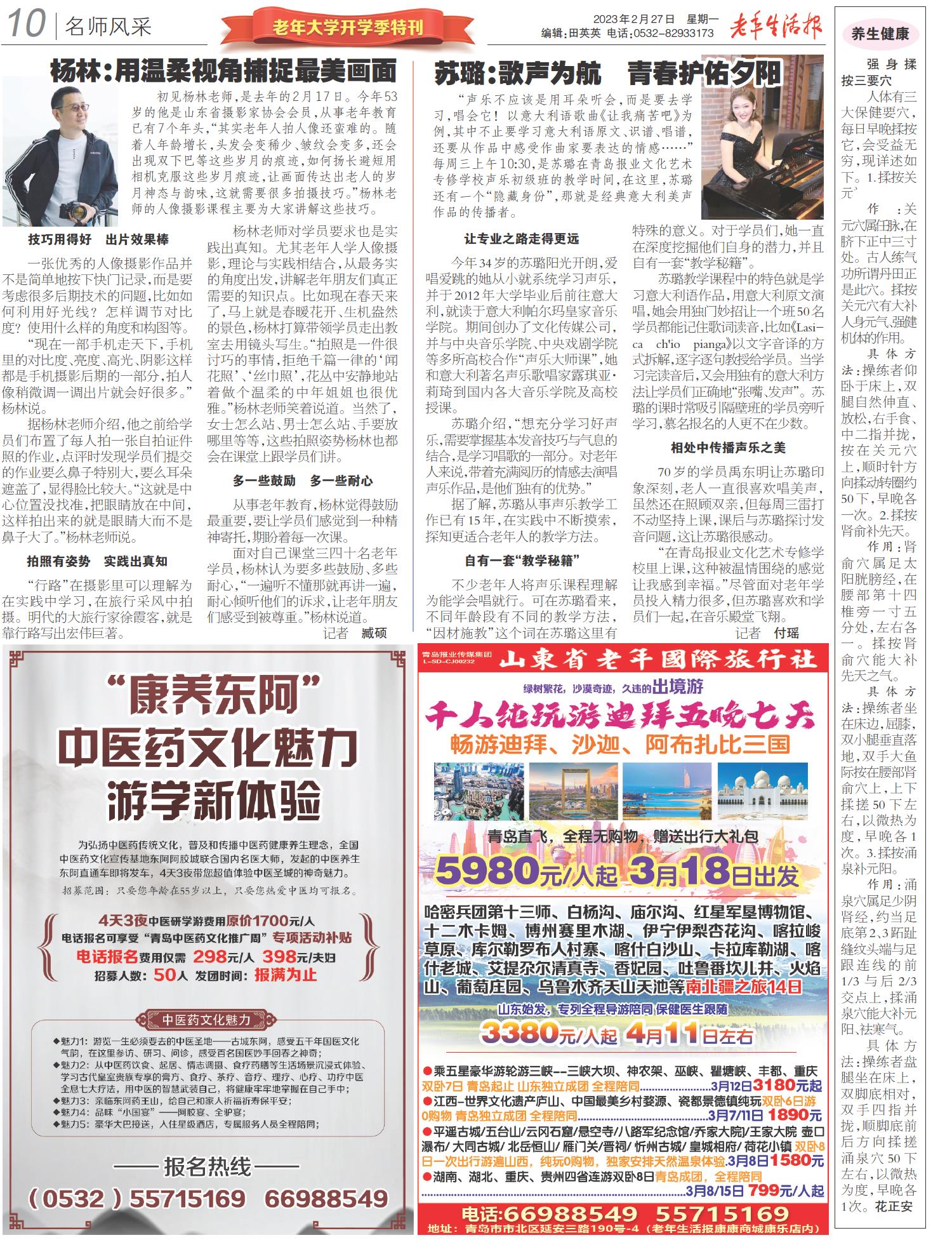 A01 头版 A02 乐龄快报 A03 家风 A04 健康周刊 A06 健康问诊 A07 老年大学开学季特刊 A08 特别报道 A09 名师风采 A10 名师风采 A11 文史 A12 中医养生