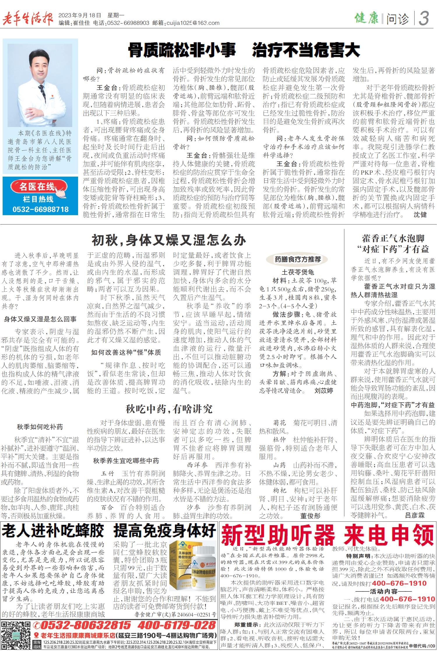 A01 头版 A02 乐龄快报 A03 健康问诊 A04 健康周刊 A07 文史