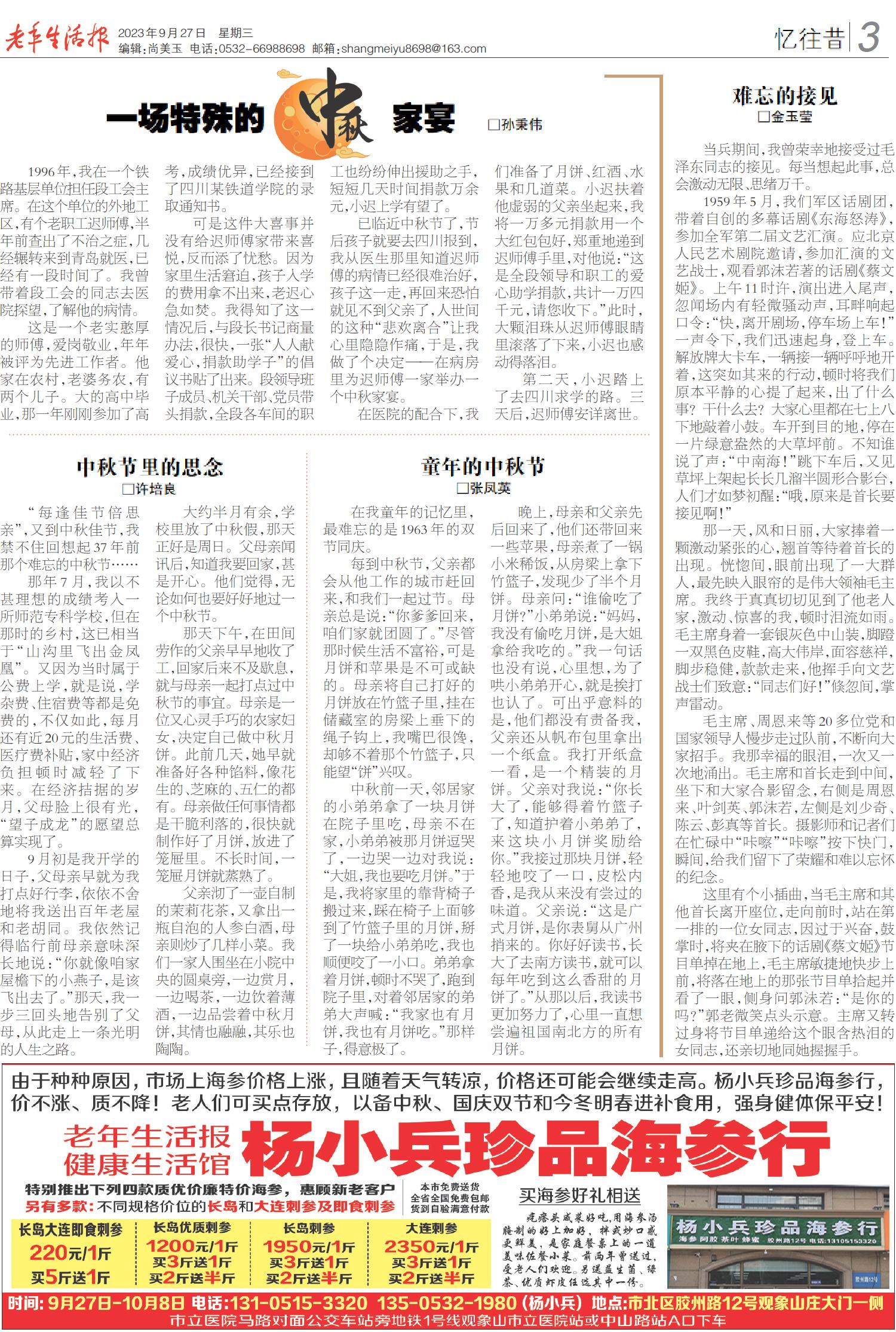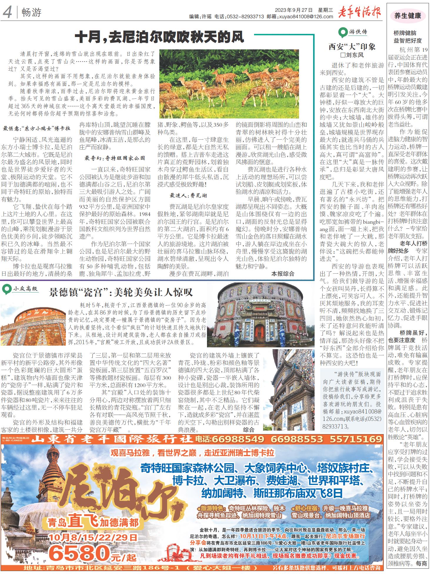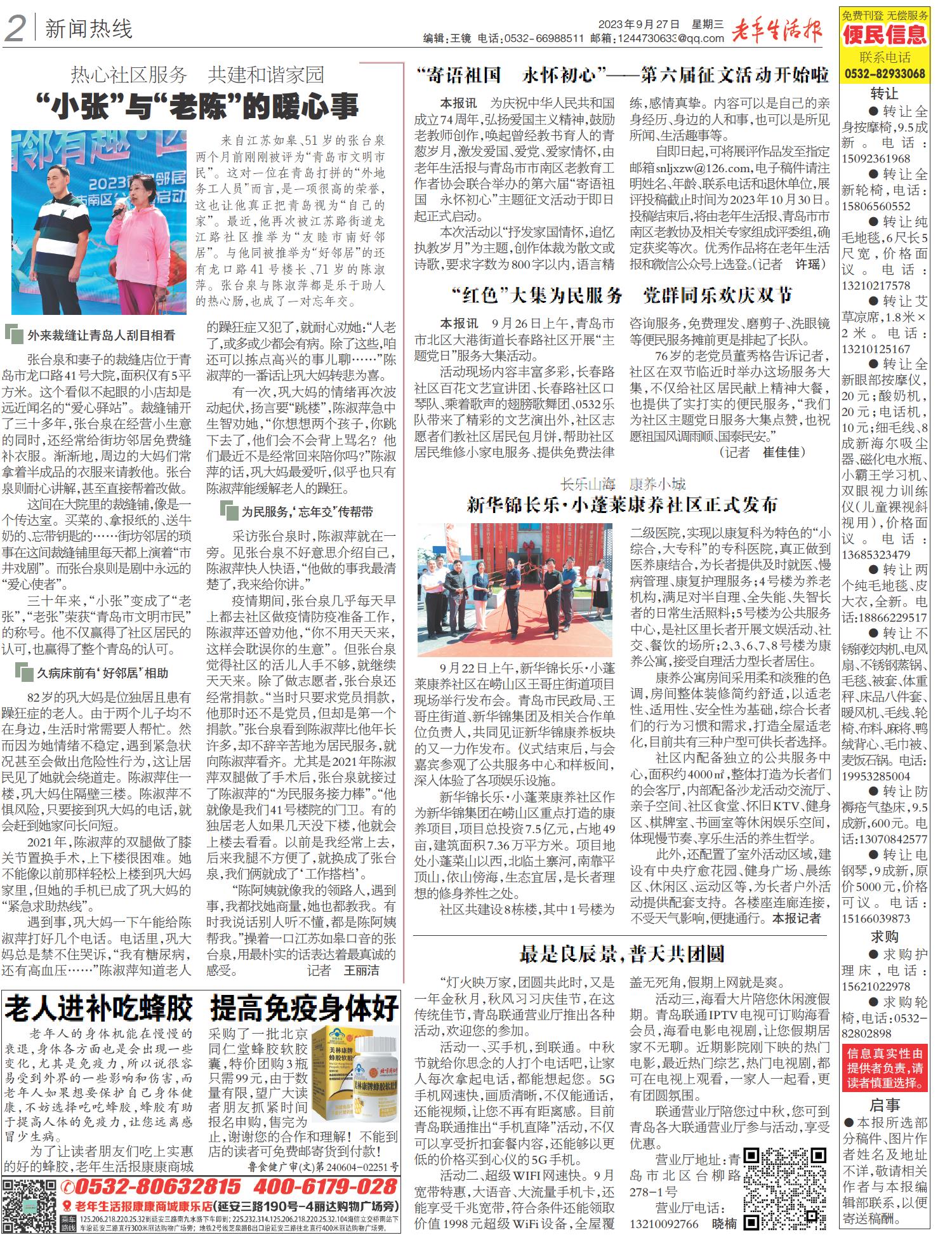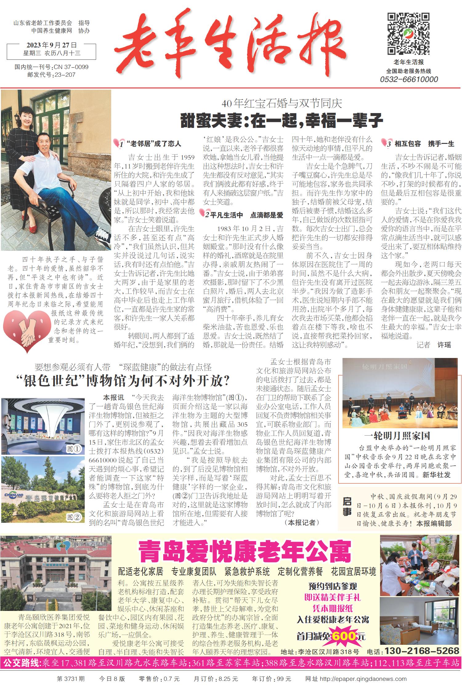 A01 头版 A02 新闻热线 A03 忆往昔 A04 畅游 A05 养老周刊 A07 文史