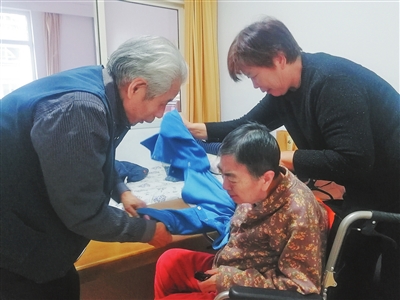 坐在轮椅上的妻子虽不多说话,耷拉着脑袋,但她清楚自己得病了,情绪时有烦躁。赵作良便赶紧上前哄一哄,安抚妻子。说起来青岛旅游被中断一事,赵作良并无遗憾,“我就和老伴安心住在这儿疗养,等病情好转了再考虑是回天津还是继续和女儿一家住一段时间。借这个机会,我也好好伺候伺候她。”赵作良深情地说。
