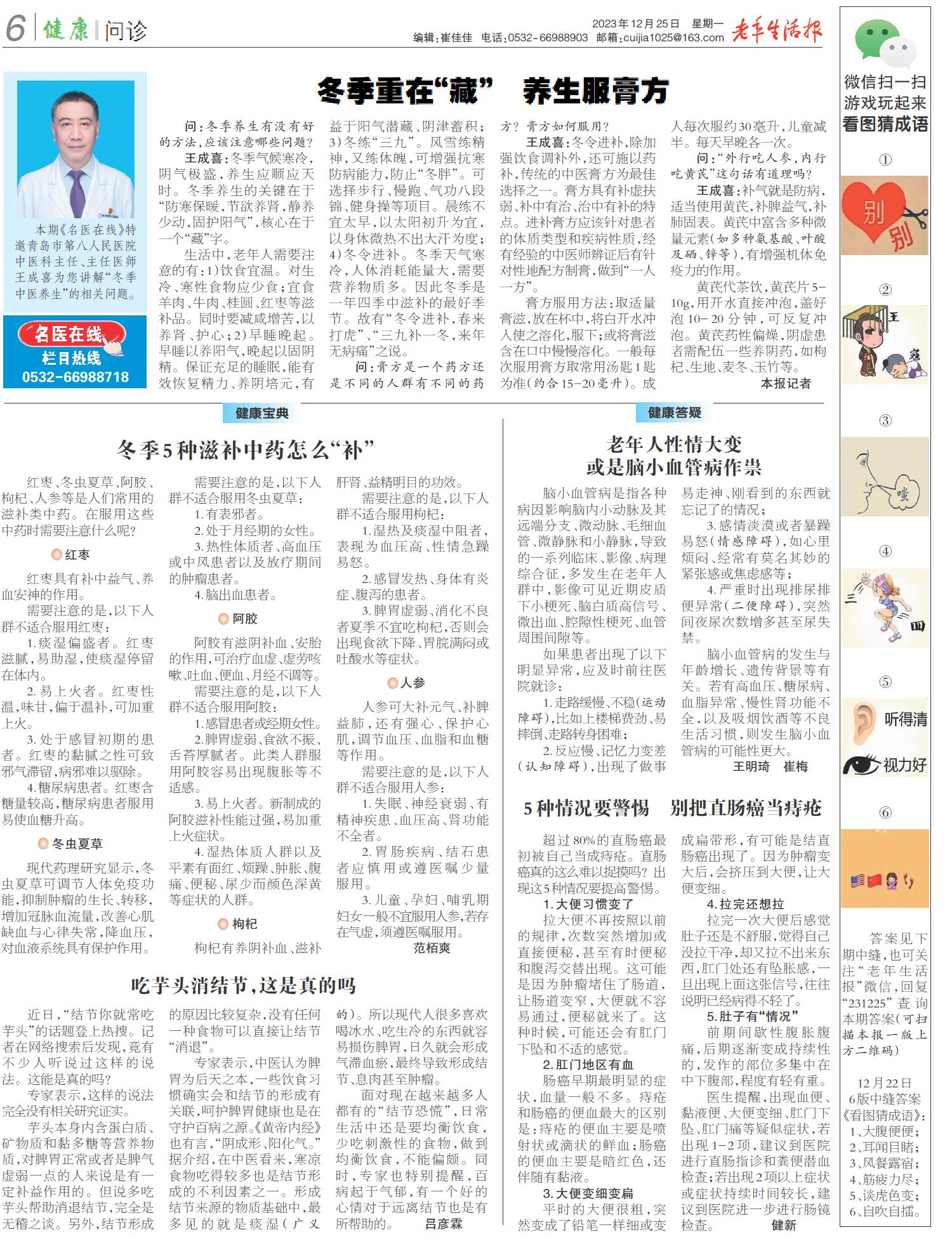 A01 头版 A02 综合新闻 A03 博览 A04 健康周刊 A06 健康问诊 A07 文史 A08 说法