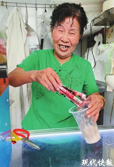 当面冲泡3条雀巢速溶咖啡,售价10元……近日,南京“手冲咖啡”阿姨走红网络。阿姨名叫韩素珍,今年73岁,经营小店“韩老太甘蔗汁”三十余年。