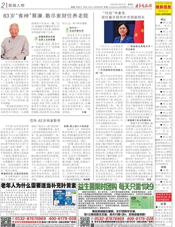 “蔡老笑称,他死之前的目标,是要把自己这辈子赚的钱都花光。年轻时有能力和体力,蔡老努力赚钱,年老了身体不便住到顶级酒店养老院,花钱雇各种专业人士照顾自己。永远热爱生活,在赚钱花钱这两件事上,蔡老真正做到了知行合一。”陈世明说。 王敏