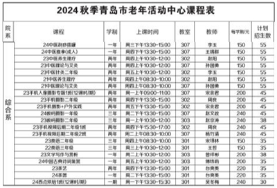 开学时间:2024年9月2日-6日为开学周,请根据课程时间自行前往青岛市老年活动中心上课。