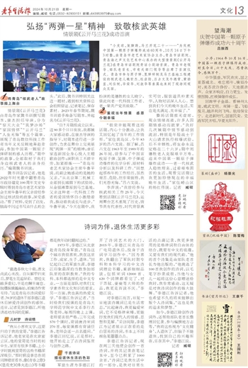 如今,李德江除创作诗词外,还帮助部队老首长整理回忆录、参与编撰地方志等,“我将这些视为‘文化健身’,人退休了,但脑子不能退休,找到自己的兴趣所在,乐在其中。”李德江说。
