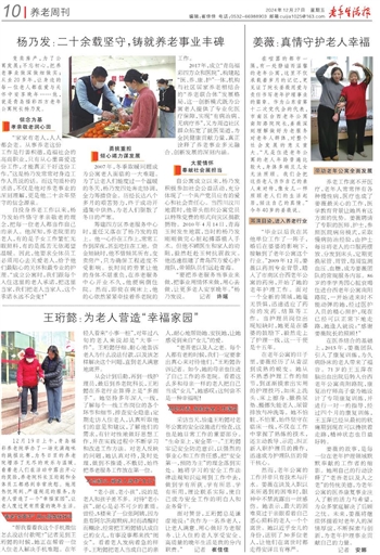 “要把养老服务当事业来做,把事业用情怀来做,用心去做,让更多老人安享晚年。”杨乃发说。 记者 许瑶