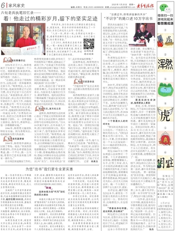 “人生就像一本书,每个人都有自己的故事。”杨荣亮说,“我希望写一本回忆录,回望自己走过的路,也让后人能从中汲取力量。”如今,杨荣亮已经为自己的回忆录列好了目录,并在本报编辑部的协助下,开始了正式的撰写工作。 记者 尚美玉