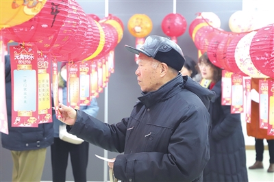 大红灯笼高高挂,五彩灯谜迎风飘。在各个军休服务站(点),数百条精心设计的灯谜既具趣味性又富含文化内涵。军休干部们或驻足沉思,或互相讨论,现场气氛热烈。
