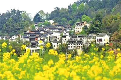 春天的篁岭是油菜花写就的立体诗(如图)。十万亩梯田从山谷间倾泻而下,像谁打翻了调色盘,金黄连着黛青,直漫到马头墙的瓦檐边。晨雾未散时,花田是氤氲的水彩画;日头升高了,便化作熔金流银。最妙的是家家户户支起的“晒秋盘”,红辣椒、黄玉米、黑豆子,与窗外的花海撞个满怀——春晒风光,秋晒丰收,篁岭人把四季都晒成了诗。