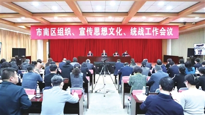 本报讯 近日,青岛市南区召开组织、宣传思想文化、统战工作会议,传达学习全国离退休干部“双先”表彰大会和全国、全省、全市老干部工作会议精神,对2025年老干部工作作出部署安排。区委书记王锋同志出席会议并讲话,区委副书记、区长刘存东主持。