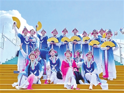 董明玉(后排右三)带领艺术团参加崂山区广场舞演出。