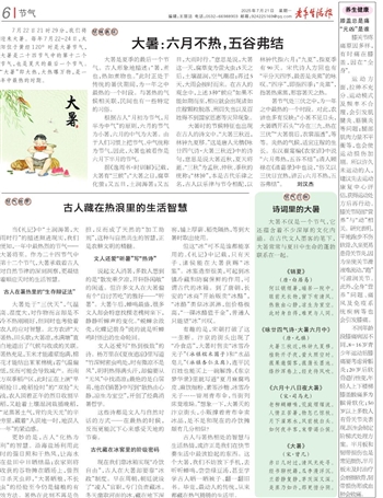 大暑处于“三伏天”,气温高、湿度大,对作物而言却是不冷不热刚刚好,但同时也考验着农人的应对智慧。北方农谚“大暑热,田头歇;大暑凉,水满塘”直白地道出了气候与收成的关联。暑热充足,玉米才能灌浆饱满,棉花才能结出累累棉桃;若气温偏低,反而可能会导致减产。而南方双季稻产区,此时正在上演“早稻抢日,晚稻抢时”的“双抢”大战,农人顶着正午的烈日收割早稻,又趁着土壤湿润栽插晚稻,“足蒸暑土气,背灼炎天光”的辛劳里,藏着“人误地一时,地误人一年”的紧迫感。