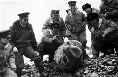 1969年朱汉标(右)与妻子王素敏(左)的结婚照。朱汉标(左三)和战友在南极。 朱汉标(右)全家福。