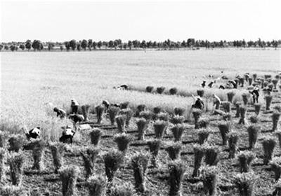 割麦:1963年 6月 21日,在江苏省丹徒县,江心人民公社社员正在收割小麦。