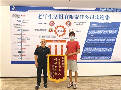 “真的太谢谢你们了,不然真的不知道我们还有没有机会再重逢。”7月4日上午,读者高文远和米海泉委托高文远在青岛上大学的孙子高天伟,将一面写有“心系老年人 情洒夕阳红”的锦旗送到本报编辑部,表达对《寻亲周刊》助他们老战友团圆的感激之情。
