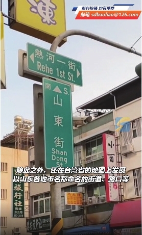 除了山东美食,记者还发现:台湾省地图上,还有不少以山东城市命名的道路和景点。如济南路、济南宫、青岛西路、临沂街、蓬莱隧道北口、泰山交流道、新泰路、泰山综合运动中心。