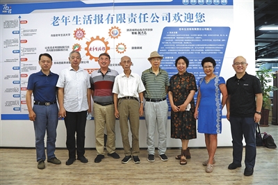 “今年,老年生活报开展的资助老年人出书活动,是我们老年人圆出书梦难得的机遇,我第一时间报了名。在报社编辑记者的帮助下,经过4个月的录入整理、编辑校对、设计排版、印刷,把几十年来发表过的部分文学作品集结成册,终于完成一本11万字的《映日荷花别样红诗文集》,太激动了!”85岁的徐东阳(左四)分享了自己的出书经历与心得。