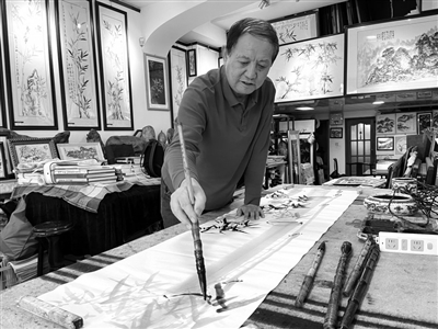 出生于1957年的刘金锡自幼酷爱书画艺术,对书画有着浓厚的兴趣,18岁到北京参军入伍后,在后勤部门工作的他努力地提升着自己。“年轻时有很多想法,学过很多技能,但最喜欢的还是书画。”刘金锡告诉记者,单纯的习字有些枯燥,直到他阅读到一本专业的绘画书籍,便像着了魔一样迷上了绘画。