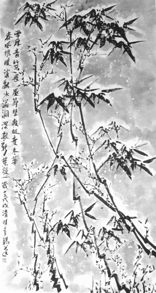刘金锡的绘画以竹子山水为主,在多年的绘画过程中,他对竹子可以说是情有独钟。从开始学习画竹,到喜欢画竹,再到痴迷画竹,刘金锡告诉记者,自己从此爱上了画竹,一天不画就“不得劲儿”,无论到哪儿,看到竹子就会觉得异常的亲切。