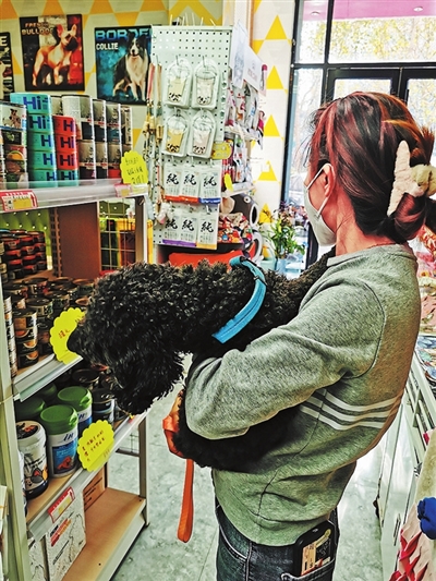 走访几家店铺,记者观察到宠物零食种类相当丰富,吃的有蛋黄冻干、肉泥布丁、猫条、营养片剂等,喝的有宠物牛羊奶、洁口水、液体营养剂等。顾客徐女士养了一只小型泰迪犬,购买了一袋5公斤的狗粮后,询问店主“有什么其他好吃的”,又购买一袋500克鸡肉冻干和一支磨牙风干肉干,共花费320元。徐女士表示,这是她家狗狗一个月左右的口粮。