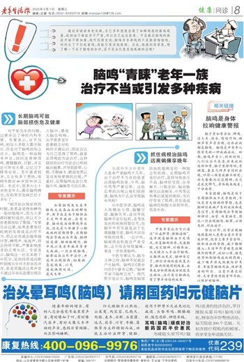 老年生活报健康 问诊A08脑鸣“青睐”老年一族 治疗不当或引发多种疾病 2023-02-01 2 2023年02月01日 星期三