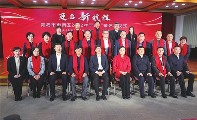 本报讯 近日,青岛市市南区举办“更启新航程”——市南区2022年干部“荣休”仪式。市南区委书记王锋、区人大常委会主任张忠、区政协主席管寿果等出席仪式,为参加仪式的16位退休干部代表颁发“荣休”纪念牌。