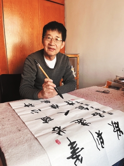后来,郭增宽还先后在多所老年大学里任教过,并被电视台特聘为书法老师。相比起全职工作,郭增宽觉得这份弹性工作没有给他太多压力。“不管上几节课,都不会觉得累,自己就爱好这个,能利用自己的特长奉献社会,觉得特别充实。”