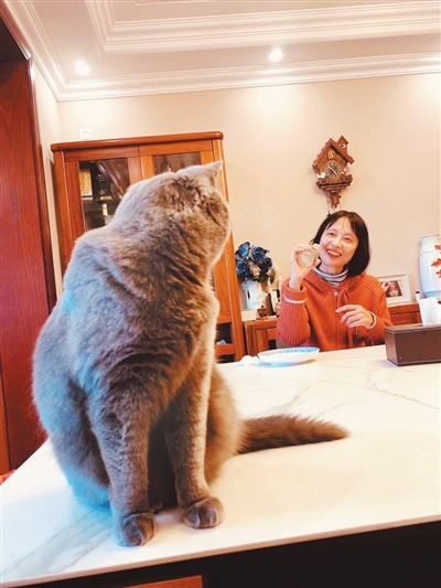 今年56岁的耿女士是一名大学老师。三年前,她从亲戚家收养了一只小蓝猫,名叫小灰。三年间,她们一家都把小灰当作家庭成员,而她更是像养孩子一样照顾、教育小灰。小灰也给这个家庭带来了不少欢乐。耿女士现在以在家上网课的形式给学生授课。丈夫每天要去上班,女儿远在美国,是小灰的陪伴温暖了她的生活。