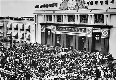 1956年11月10日至1957年1月9日,国务院批准外贸部和广东省人民委员会共同以中国国际贸易促进委员会的名义在广州举办新中国第一次大型的国际贸易盛会——中国出口商品展览会。