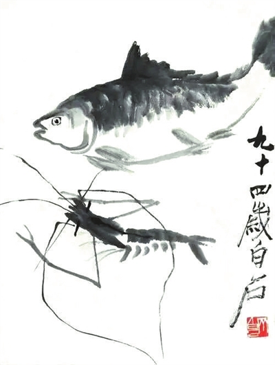 从1937年开始,齐白石题款的年龄就比实际年龄大两岁和四岁。如1943年所画《工虫鸢尾花》,落款“八十三岁”,实七十九岁;1952年所画《和平》,落款“九十二岁”,实八十八岁;1954年所画游虾,落款“九十三岁”,实九十一岁。齐白石1957年9月16日病逝时九十三岁,但落款中已出现“九十七岁”。