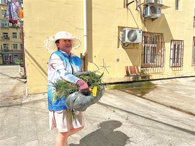 当天的温度是30℃,虽然还不到中午,但站在路面上,已感觉到热浪滚滚。周永梅告诉记者,自己主要负责6个楼座的服务,采访当天的主要任务就是清除杂草。“夏天气温高,也是杂草疯狂生长的季节。必须及时清除。”虽然天气炎热,但周永梅的“装备”一件都不能少,太阳帽、防晒袖、防晒手套……因为清除杂草,不仅草屑纷飞,草里还有虫子,必须要做好防护。
