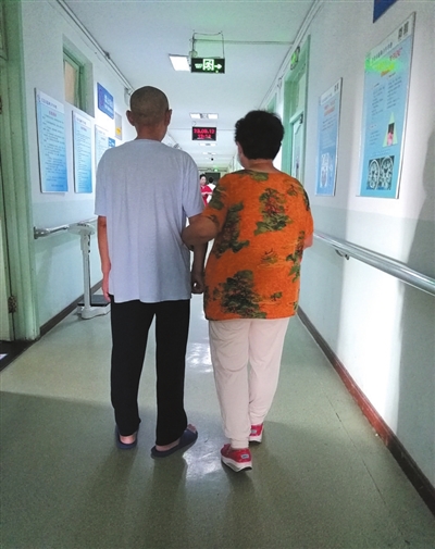 在医院走廊里搀扶着走路的这对老夫妇,他们用爱与真情诠释了夫妻之间肝胆相照的忠贞、恩重如山的情义……
