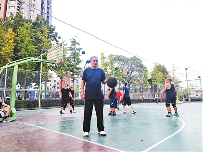 每天下午,在青岛市市北区海岸路篮球场总会看到一位身姿矫健的“大叔”跟一群小伙子们打球,投篮、运球、传球都不在话下。