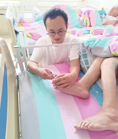 朱康杰坦言,在工作中,他也有过委屈,但也明白,老人并非故意为难人,这是疾病导致的行为异常。每次去护理,他都会先安抚老人的情绪,长此以往,老人便对他产生了信任。“2021年,我的母亲因病去世,老人走了我才觉得没有孝顺够,所以现在,我希望自己能尽可能地帮老人做些什么。”